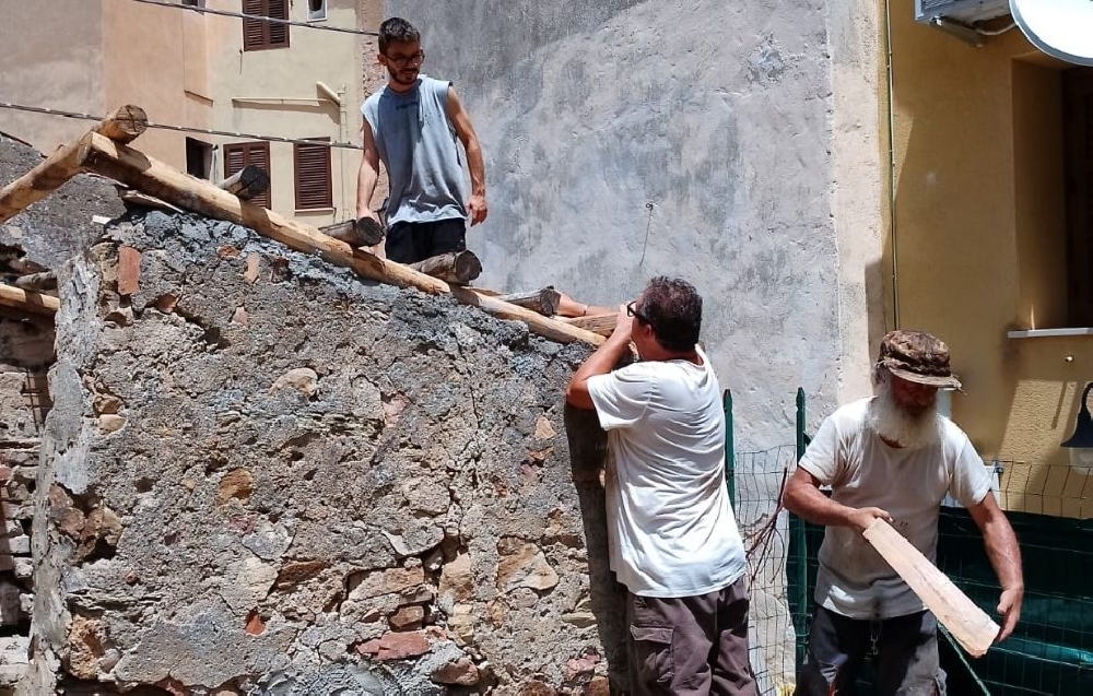 Foto: Gli abitanti del borgo, insieme ad una maestranza locale, che nelle ultime settimane sono stati impegnati nella ristrutturazione dell'antico forno.